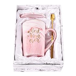 Also, it comes with a cute little spoon and a coaster. Also, it comes with different marble colors so you can get your mom’s favorite color as well.